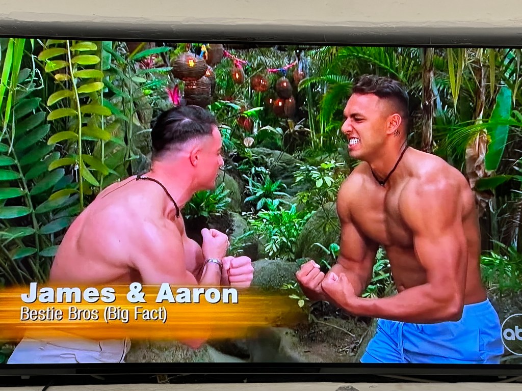 Time for new arrivals and in walks the “bestie bros” from last season, James and Aaron. Last time they were on Paradise they found love… with each other and left together. It was actually kind of hilarious because they made it almost to the end with two different girls who fully expected a romantic beach proposal, and in the end the guys just decided they weren’t that into these girls and peaced out and moved in with each other back home.