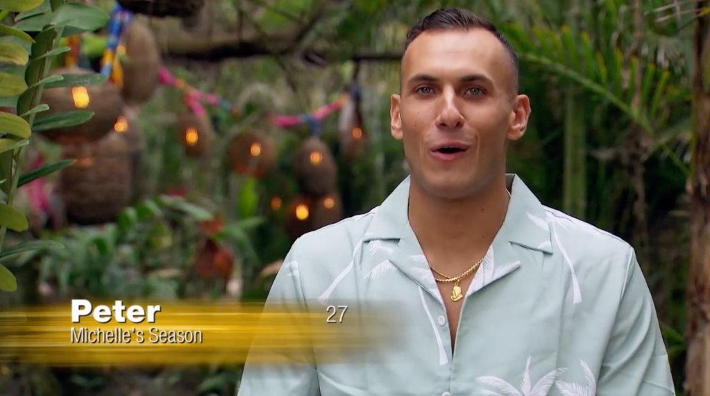 New day, new fuckery. In walks Peter the Pizza guy. I actually remember this asshole. He was on Michelle Young’s season of the Bachelorette and she kicked him off for being a complete narcissist douche. He was aggressive and obnoxious and talked incessantly about his stupid pizza chain as though he was taking meetings with Jeff Bezos and Bill Gates. Dude owns a couple pizzerias in FLORIDA. He’s tacky and show off-y and, of course, also totally fragile, and when called out on his obnoxious shit by the guys on Michelle’s season, he responded by having a tantrum and throwing one of their jackets in the pool.